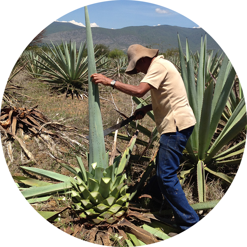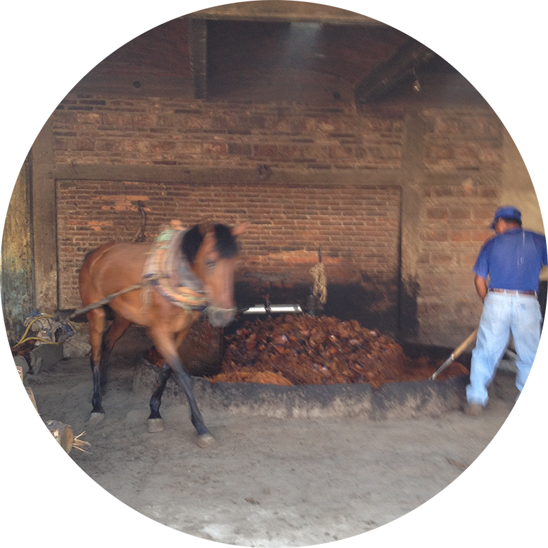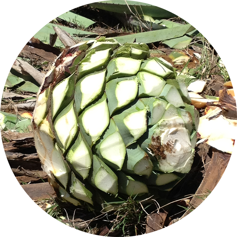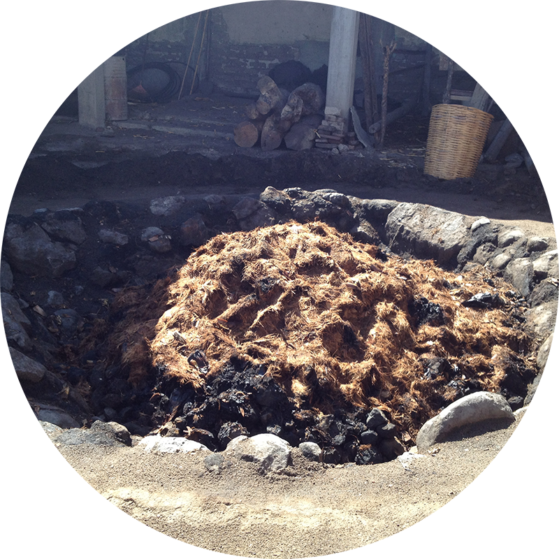 アガベの中心部の球茎部「ピニャ」を収穫し加熱するが、多くが「タテマド」と呼ばれる蒸し焼き窯でローストされ、ここでスモーキーな風味をつくりだす。